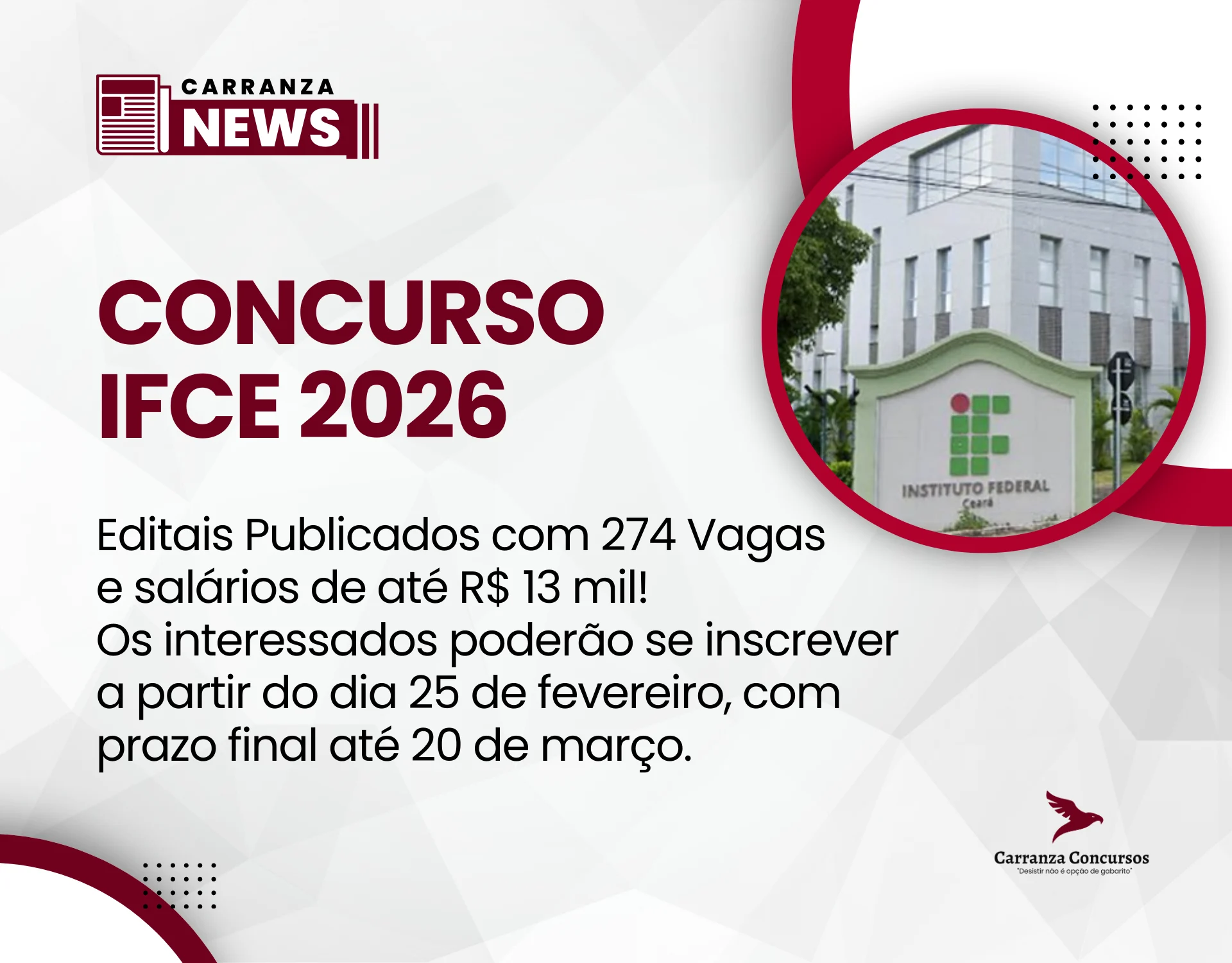Instituto Federal do Ceará abre oportunidades para níveis médio, técnico e superior; salários iniciais chegam a R$ 13 mil.