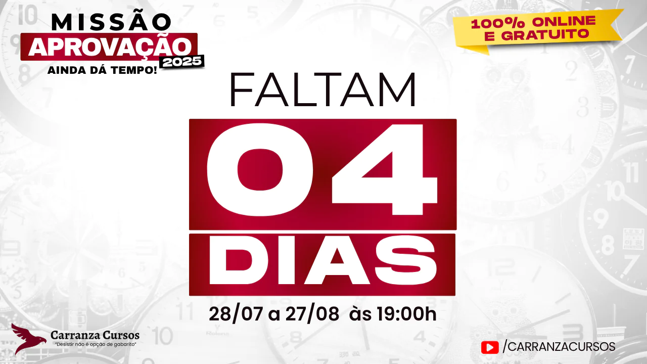 Tenha o método completo e direcionado para o seu concurso com cronograma de estudos simples e eficiente, metas semanais alcançáveis para te manter produtivo, conteúdo atualizado, encontros exclusivos e muito mais...