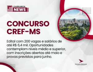 CREF-MS publica edital com 200 vagas e salários de até R$ 6,4 mil!